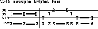 progression is F to a G minor, to a C7th. Sounds simple. Below we have